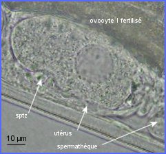 Ovocyte I, dans la spermathèque, juste après l'ovulation
